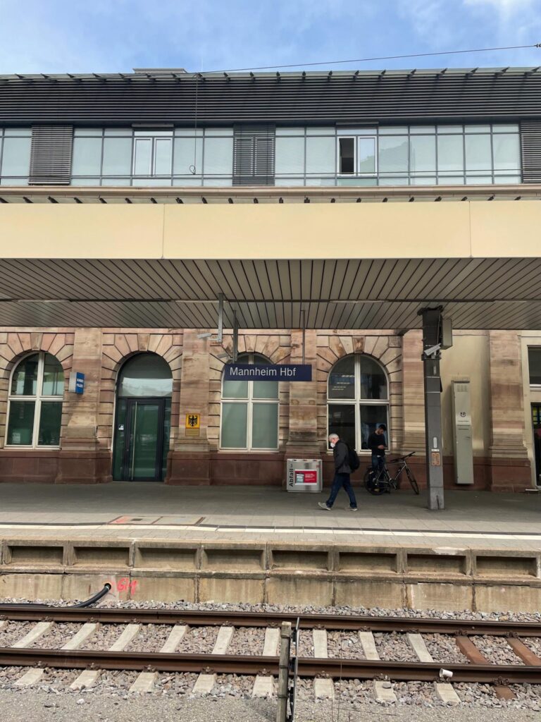 Igen tog vi yderlige en bevidst længere pause på en time ved togskiftet, denne gang i Mannheim. Vi fandt en lille nudelrestaurant, hvor vi spiste frokost, og fik Eloise til at falde i søvn i barnevognen på en lille gåtur. Men at sove på togene var heller ikke noget problem, da vi havde et tæppe med og kunne få hende til at sove som vi normalt gør hjemme. Det var så hyggelige øjeblikke, når hun sov i vores arme, vi havde musik i ørerne og kiggede ud gennem togvinduerne.